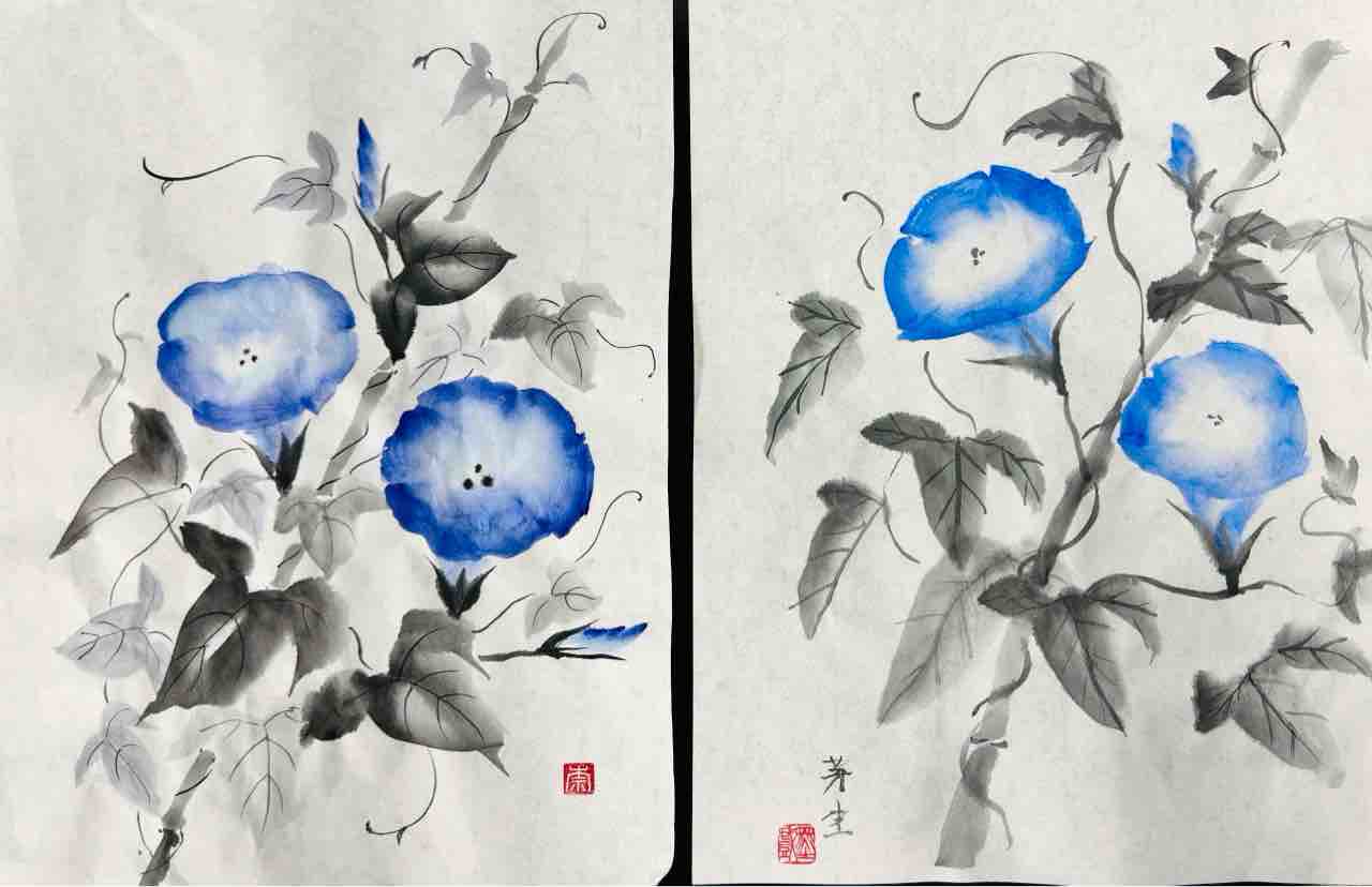 イギリスからいらしたお二人。1月のロンドン・アートフェアでキツネの作品をご覧になったことがご縁で、今回の日本旅行を機にプライベートレッスンにお越しくださいました。ご一緒に参加されたご友人は、日本のインターナショナルスクールでアートの先生をしていらっしゃるとのこと。お二人とも水墨画は初めてとのことでしたが、墨色の出し方や筆使いがとてもお上手で、素敵な竹の作品が完成しました。