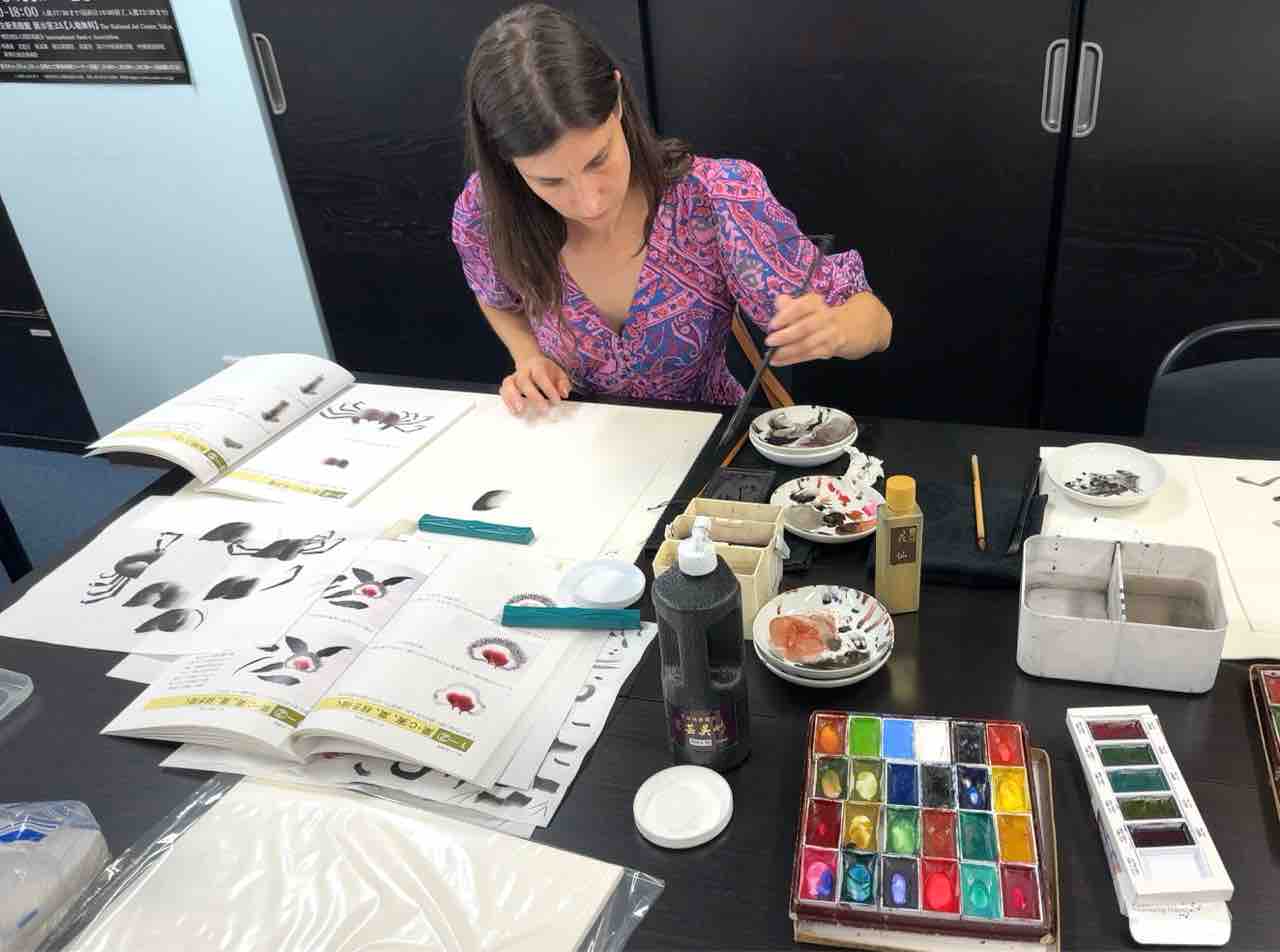 国際墨画会の通信コースを受講中のスペインの生徒さんが、渋谷本部にて通学クラスを受講されました。3日間の集中講義は多くの課題をこなすハードスケジュールでしたが、素晴らしい集中力で意欲的に学ばれていました。