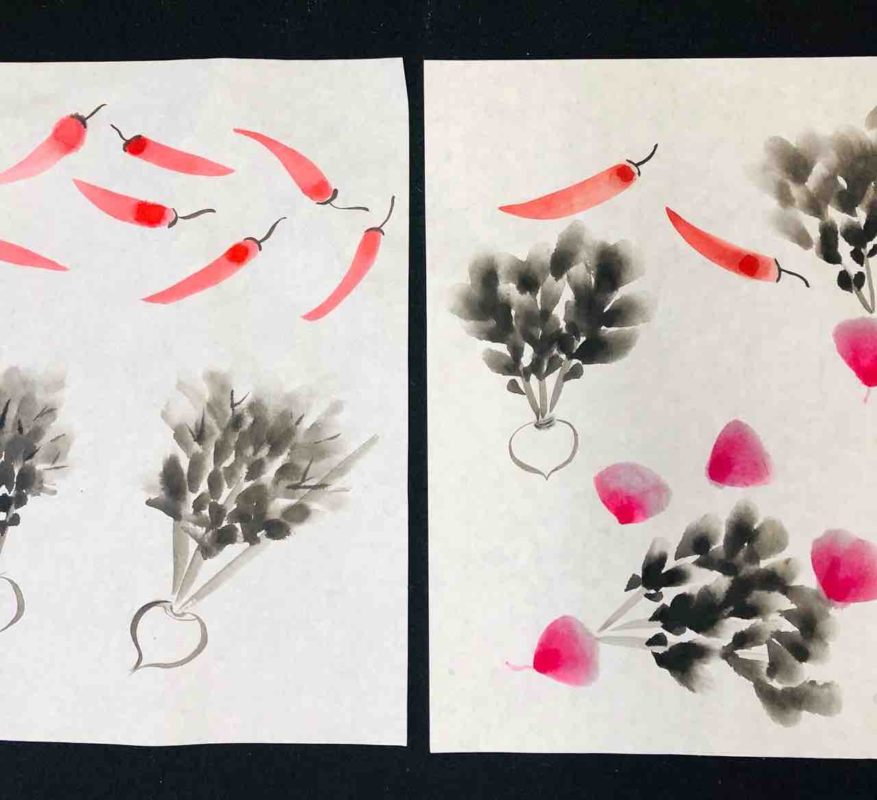 2022年04月16日 西日暮里第二日曜クラス 野菜を描く 西日暮里第二日曜クラス生徒さん作品。今月の課題は、野菜です。大根やカブは、簡単な筆遣いで描けますが作品にしやすく、初心者の方にもおすすめのモチーフです☺️Students works from Nishinippori class.