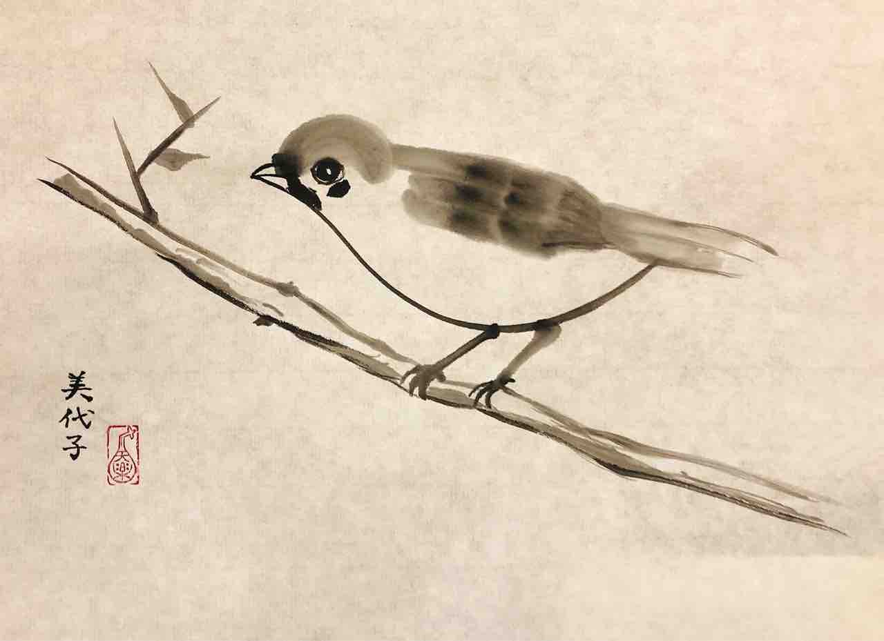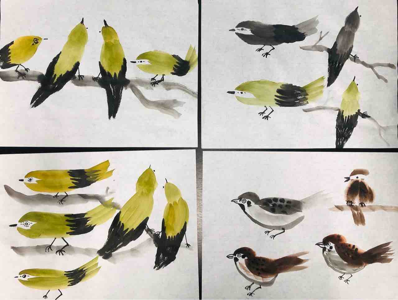 2022年04月16日 国際墨画会夜間英語クラス ウグイスと雀を描く 国際墨画会夜間英語クラス生徒さん作品。今月の課題はウグイスと雀鳥です。動物は同じお手本でも描く人によって全く違った表情になるので、とても楽しいモチーフです🦜Students works from International Sumie Association English class.