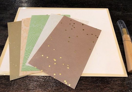 まず、5枚好きな紙を選びます。様々な紋様や、金箔が入った美しい料紙が並んでいて、どれにしようか悩みます。