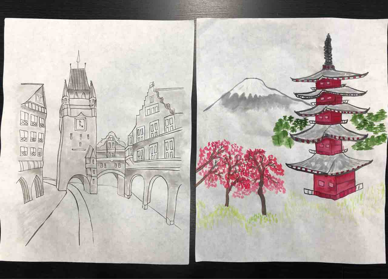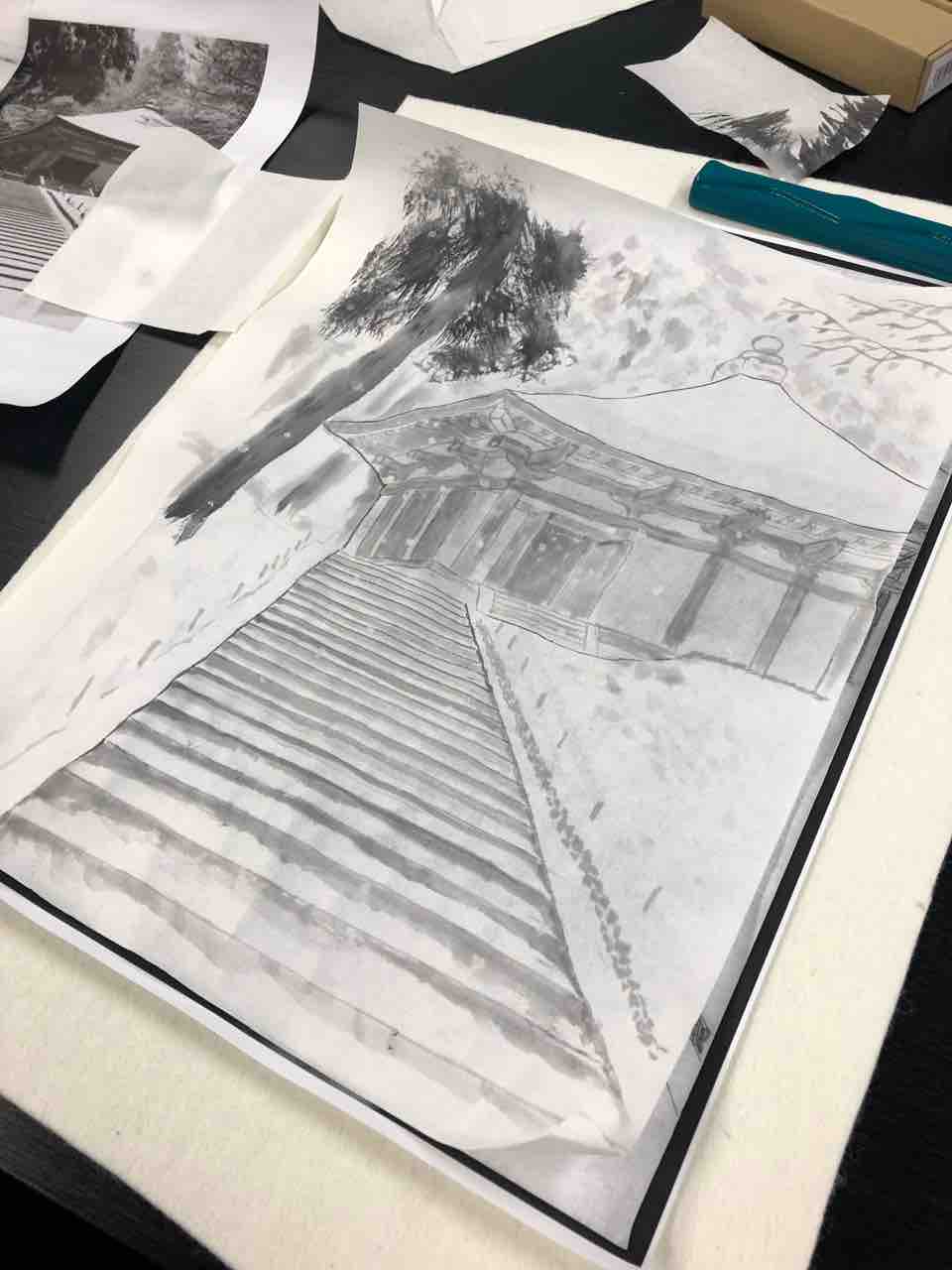 2022年11月08日 国際墨画会英語クラス 建物のある風景を描く 国際墨画会英語クラス生徒さん作品。今回は、「建物のある風景」がテーマです。皆さんにそれぞれ描きたい風景のスケッチを持ってきてもらい、それを元に水墨画作品に仕上げてもらいました。今回初参加の方もいらっしゃいましたが、皆さん素敵な作品に仕上がりました😊Students works from International Sumie Association English class. 「国際墨画会渋谷本部英語クラス」カテゴリの最新記事