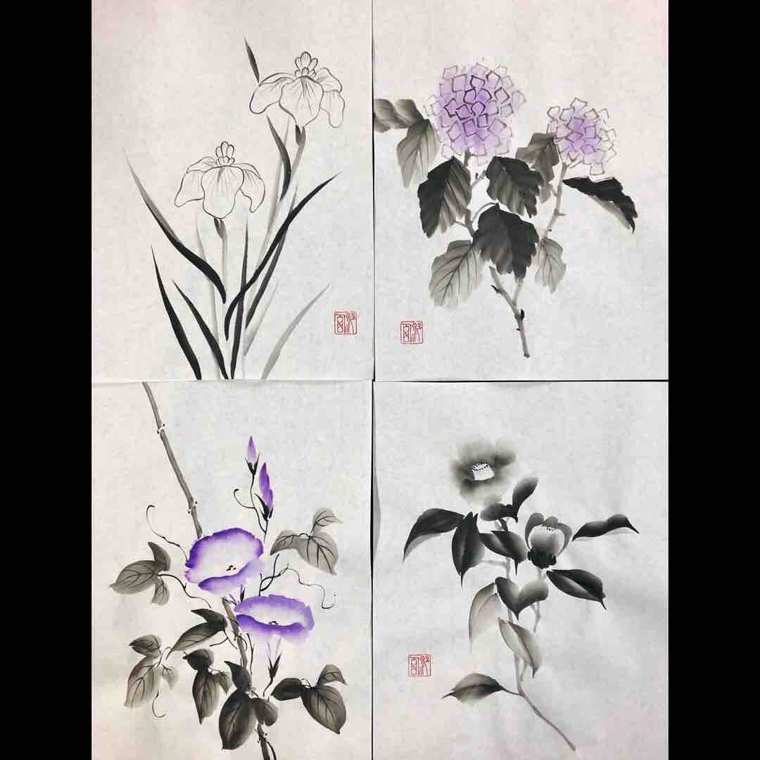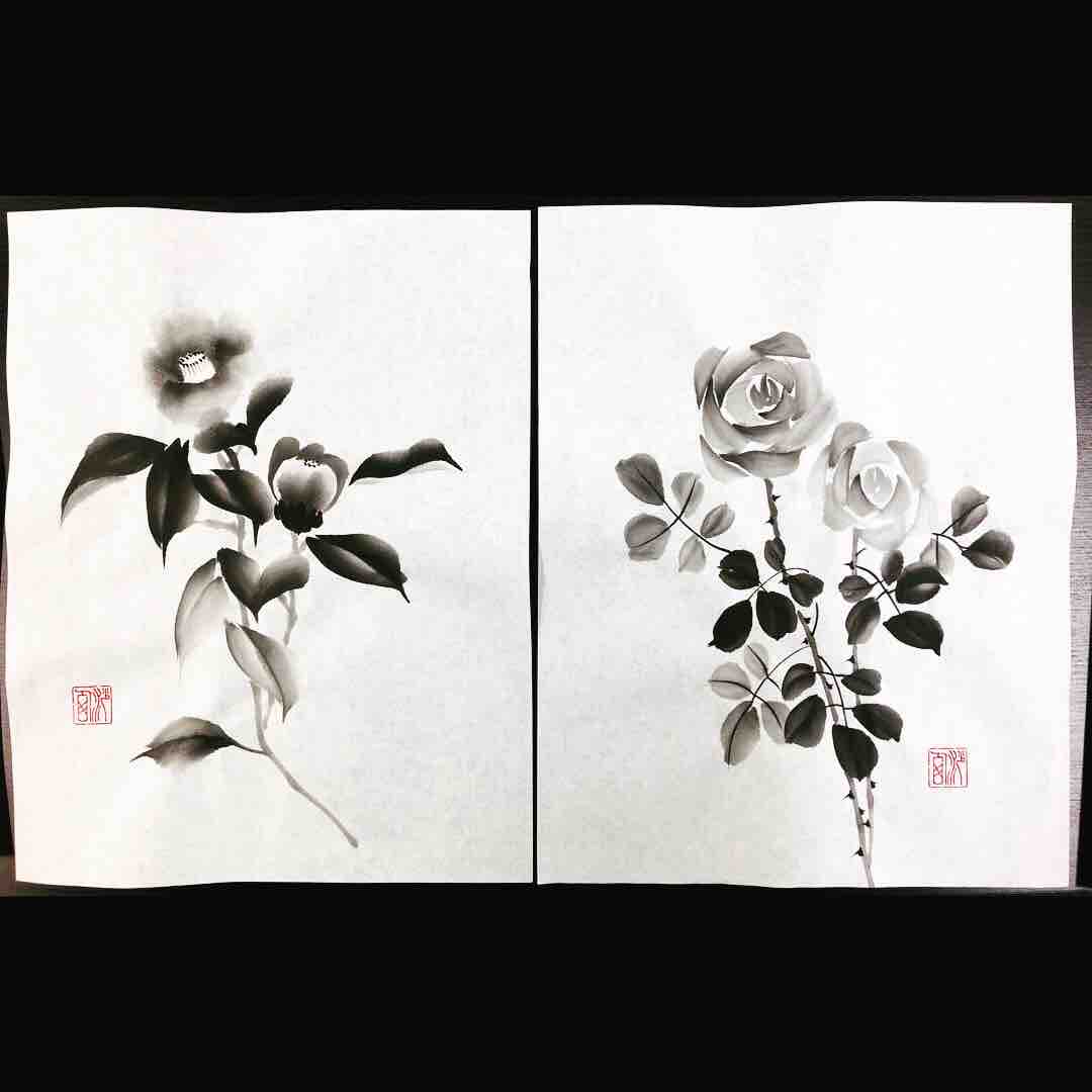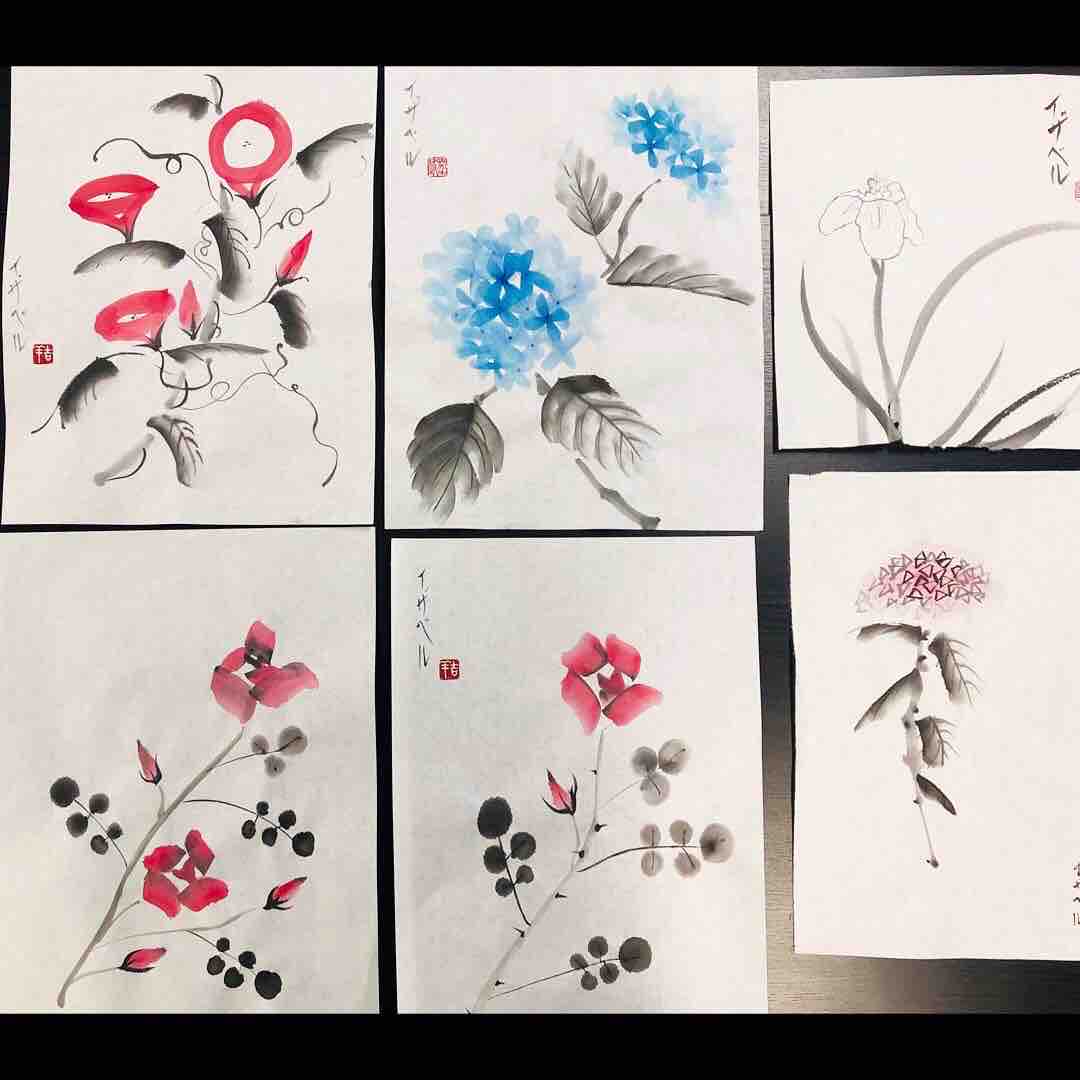 Students works from International Sumie Association Distance Learning class. 2 students @bsshka @isabellekawai from overseas attended the onsite lessons in Tokyo☺️ They painted some wonderful sumie paintings 👏
