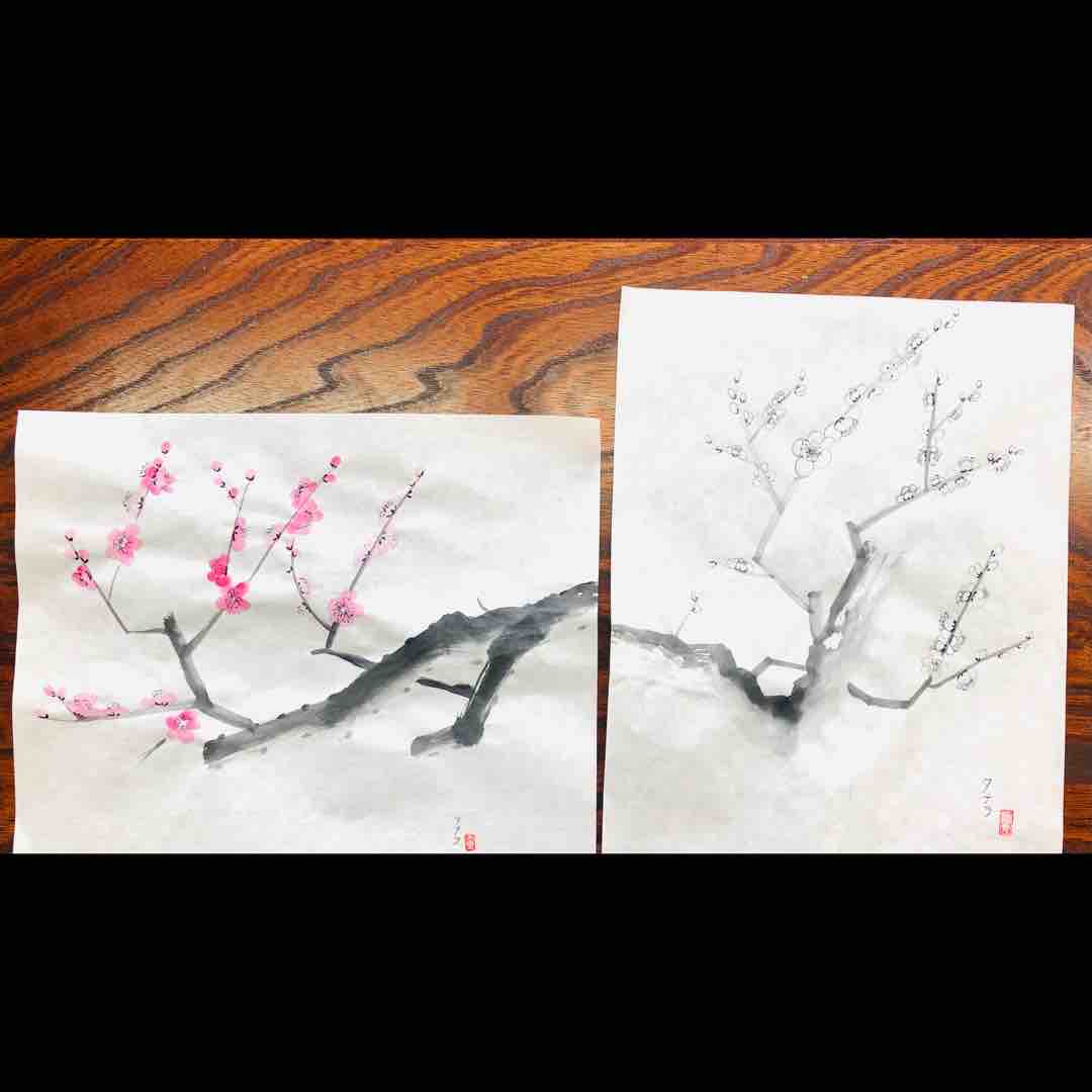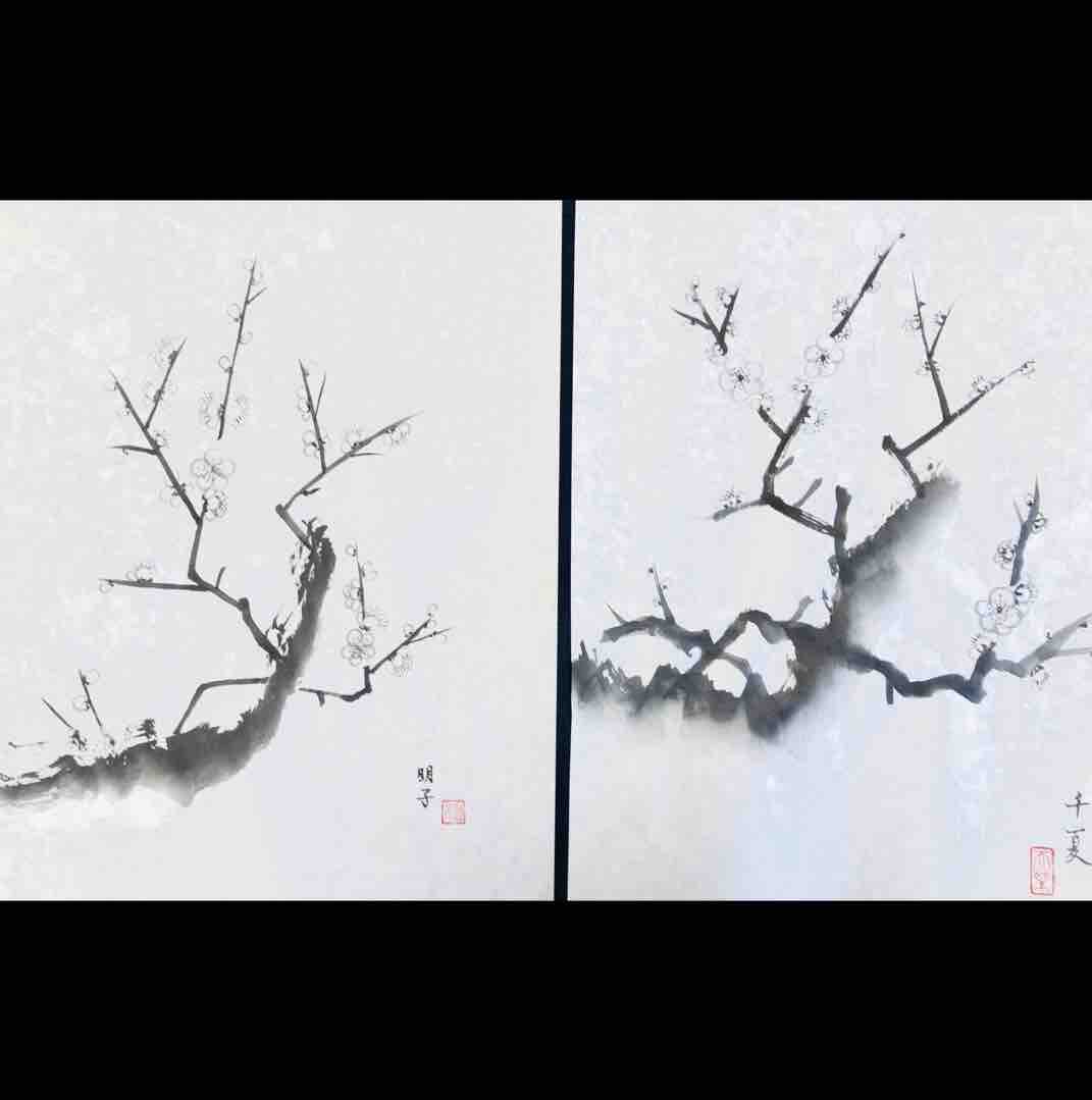 2023年07月02日 西日暮里日曜教室 梅を描く 西日暮里日曜教室生徒さん作品。紅梅と白梅を描きました。枝は、墨のグラデーションや、筆のカスレを使って表現します。皆さん素晴らしい集中で、3時間で2点の作品に仕上がりました☺️この日は体験の生徒さんも参加され、竹を描きました。Students works from Nishinippori class. 「西日暮里教室」カテゴリの最新記事
