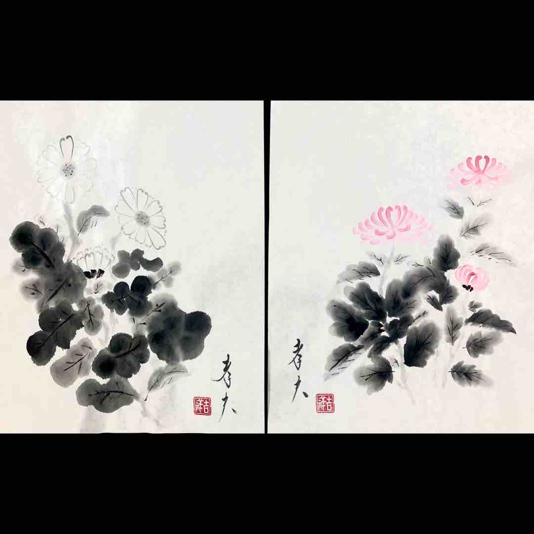 2023年07月11日 国際墨画会水曜午後英語対応クラス 菊を描く 国際墨画会水曜午後英語対応クラス生徒さん作品。菊を描きました。野菊は線描きで、古典菊は面描きで色を使って描きます。菊は葉も多いので、墨でバランスよく描くのが構図のポイントになります。Students works from International Sumie Association English class. 「国際墨画会渋谷本部英語クラス」カテゴリの最新記事