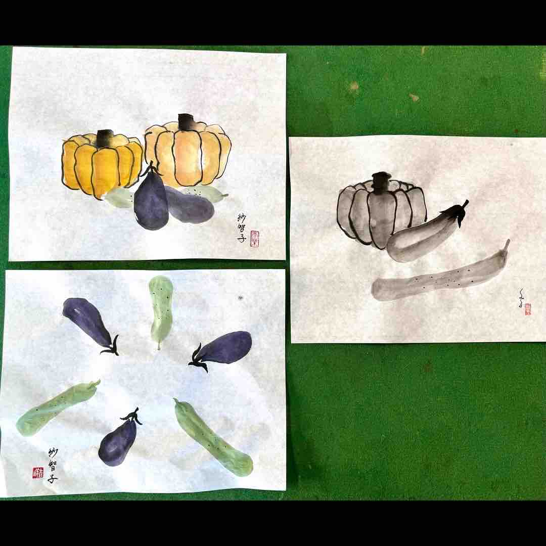 2024年03月20日 西日暮里土曜教室 野菜を描く 西日暮里土曜教室生徒さん作品。野菜を描きました。ナスとキュウリは筆を回転させながら、一筆、もしくは二筆で描き切ります。筆の動かし方によって色々な形になります🍆🥒Students works from Nishinippori class 「西日暮里教室」カテゴリの最新記事