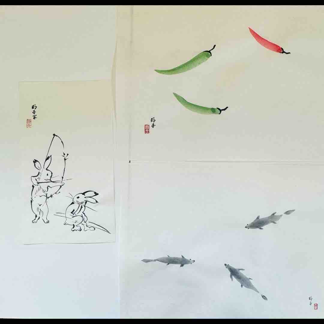 2024年05月29日 用賀クラス 鳥と虫を描く 用賀クラス生徒さん作品。鳥と虫を描きました。Kさんは、着物の帯に水墨画を描いてみたいとのことで、熱心に学んでいらっしゃいます☺️帯に描いた絵を見るのが楽しみです!またこの日は、初参加の生徒さんもいらっしゃいました。初めてだったので、トウガラシや魚などで基本の筆遣いを練習して頂きました。初レッスン、余白の効いた素敵な作品ができました😊Students works from Setagaya class. 「世田谷用賀•上野毛教室」カテゴリの最新記事