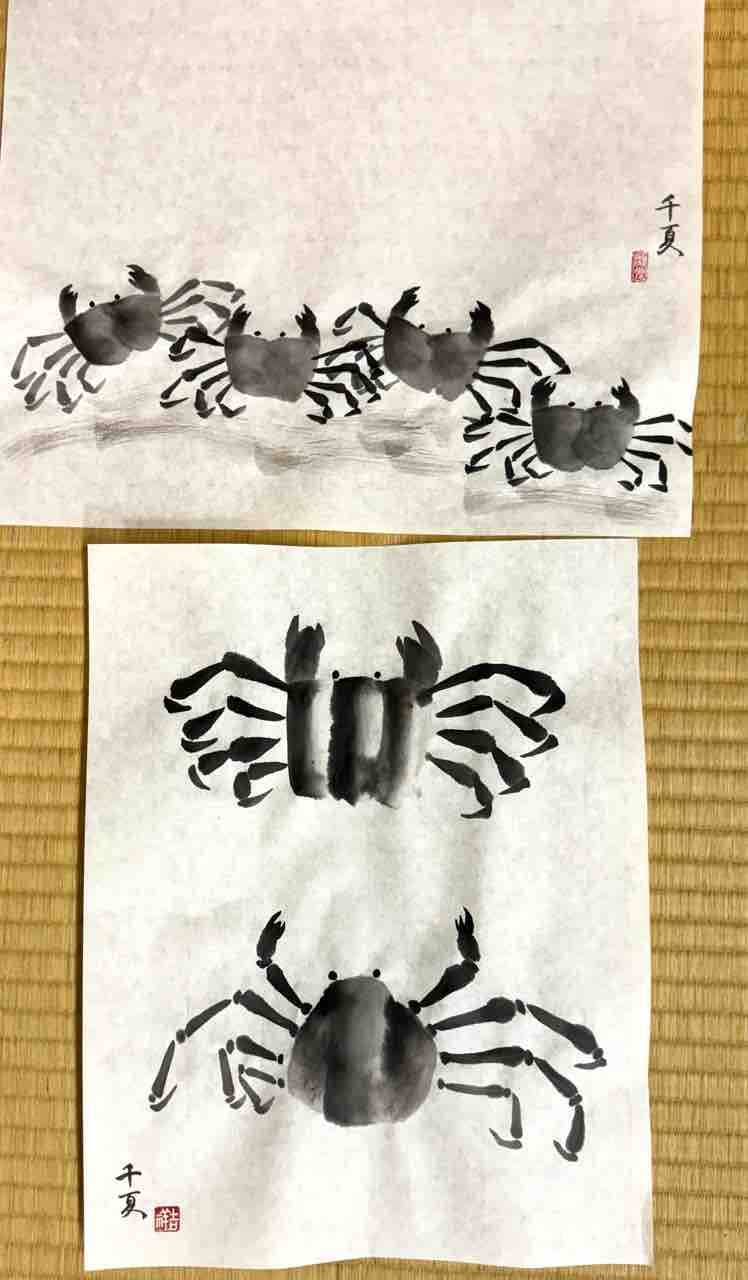 2024年09月30日 西日暮里教室日曜教室 カニとエビを描く 西日暮里教室日曜教室。昭和家屋の和室で水墨画😊仮名書家で著名な植村和堂先生が書斎として使用していた和室です。足が痛い方には正座椅子ををご利用頂いています。今月の基礎クラスではエビ、応用クラスでは工筆画で室町時代の花鳥画模写をやりました。夏休みの話で生徒さんたちの会話が盛り上がっていました😄Students works from Nishinippori class. 「西日暮里教室」カテゴリの最新記事