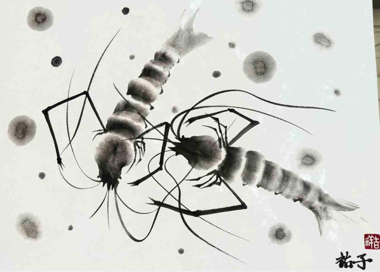 2024年10月03日 用賀教室 エビを描く 用賀教室生徒さん作品。エビを描きました。ハガキにアレンジしてもらった伊勢海老、とてもいい色と大胆な構図で描けています☺️応用クラスは、工筆画の下絵作りと、新聞紙で描く紫陽花をやりました。Students works from Setagaya class. 「世田谷用賀•上野毛教室」カテゴリの最新記事