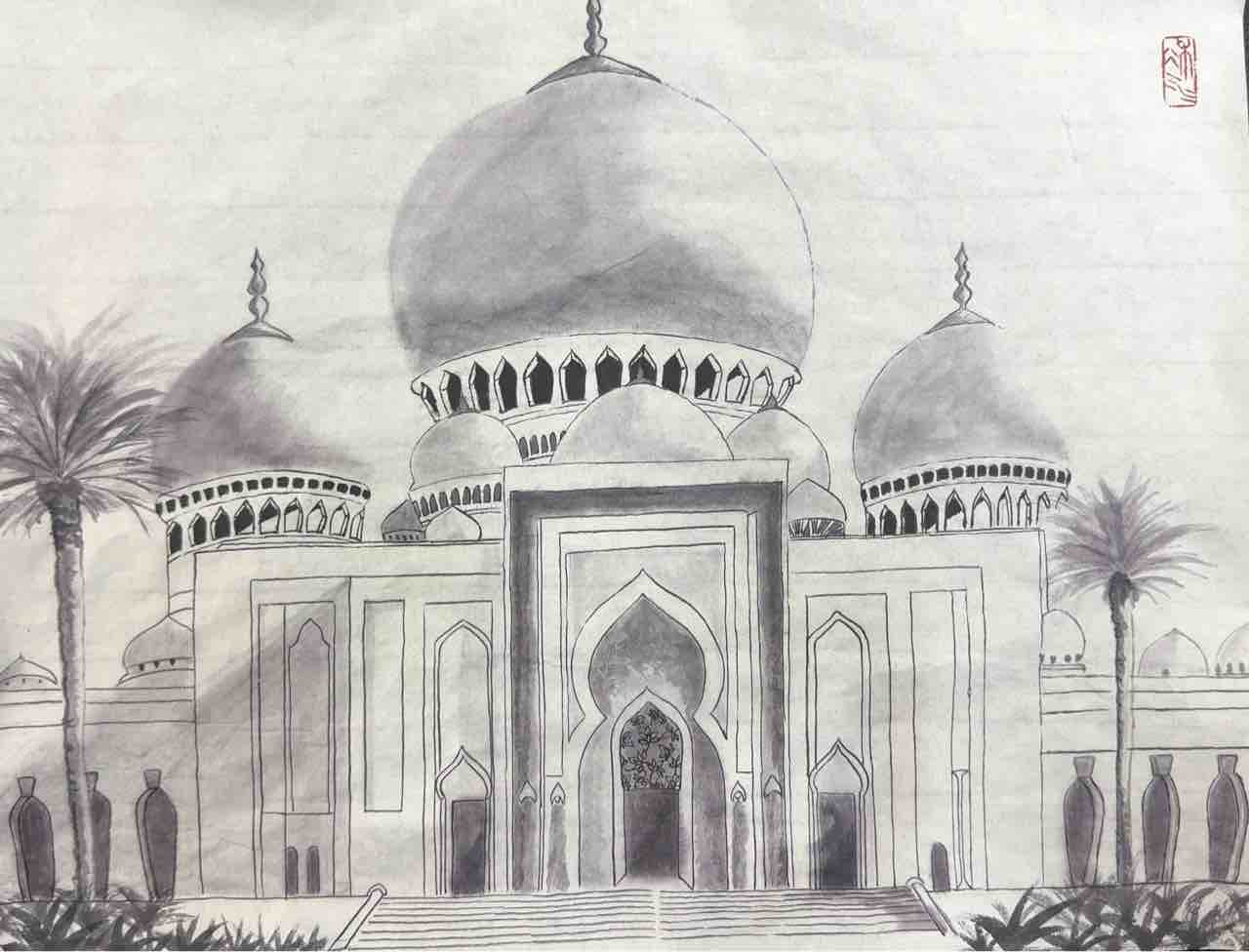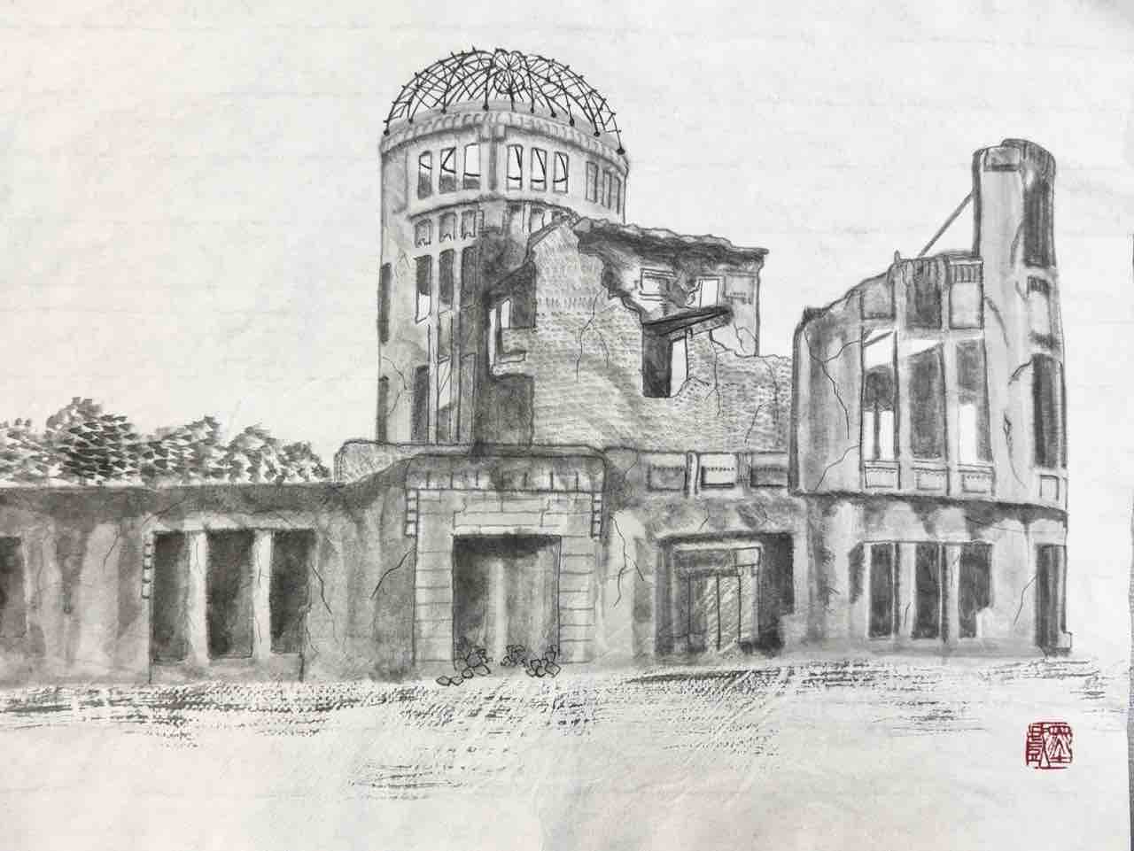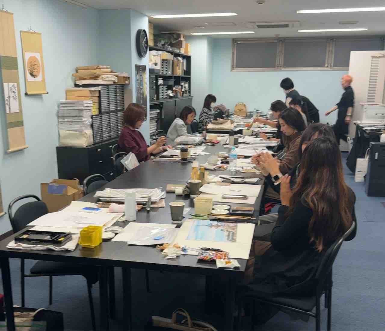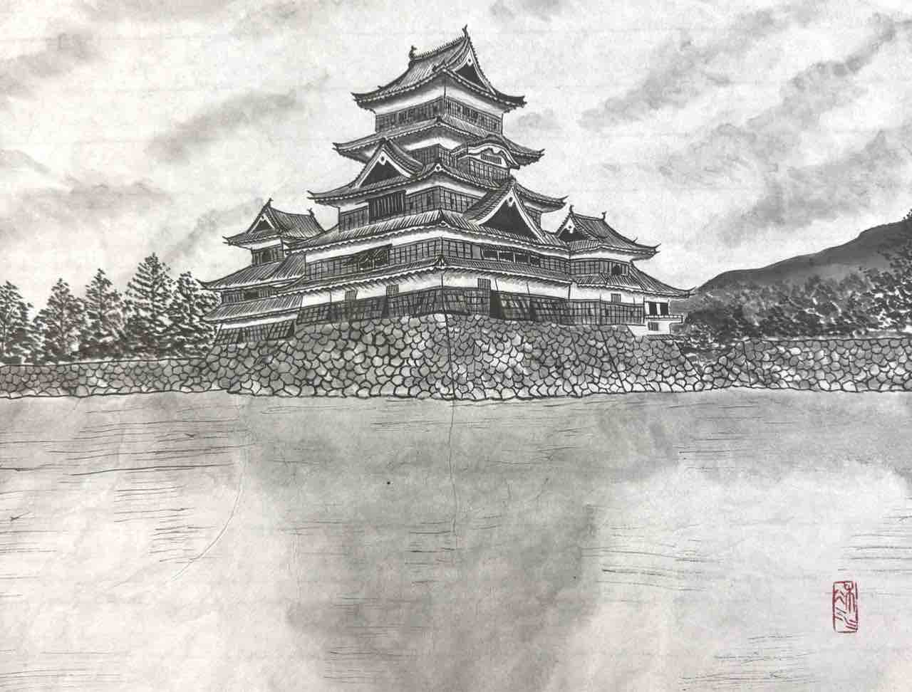 国際墨画会水曜英語対応教室生徒さん作品。この日は自由課題で、皆んなそれぞれ用意した描きたい風景を、スケッチや写真を元に描きました。出来上がりが楽しみです😊