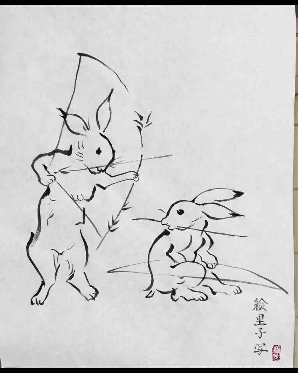 2025年04月19日 用賀日曜教室 鳥獣戯画模写 用賀日曜教室生徒さん作品。鳥獣戯画の模写をやりました。模写ですが、それぞれウサギの表情や体型に個性がでます😊Students works from Setagaya class. 「世田谷用賀•上野毛教室」カテゴリの最新記事