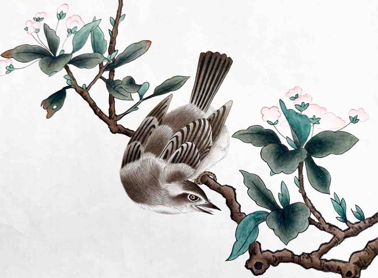 In the advanced class, which is attended by students who have completed the basic course, students learn techniques beyond those covered in the basic class. One such technique is gongbi, or detailed painting.