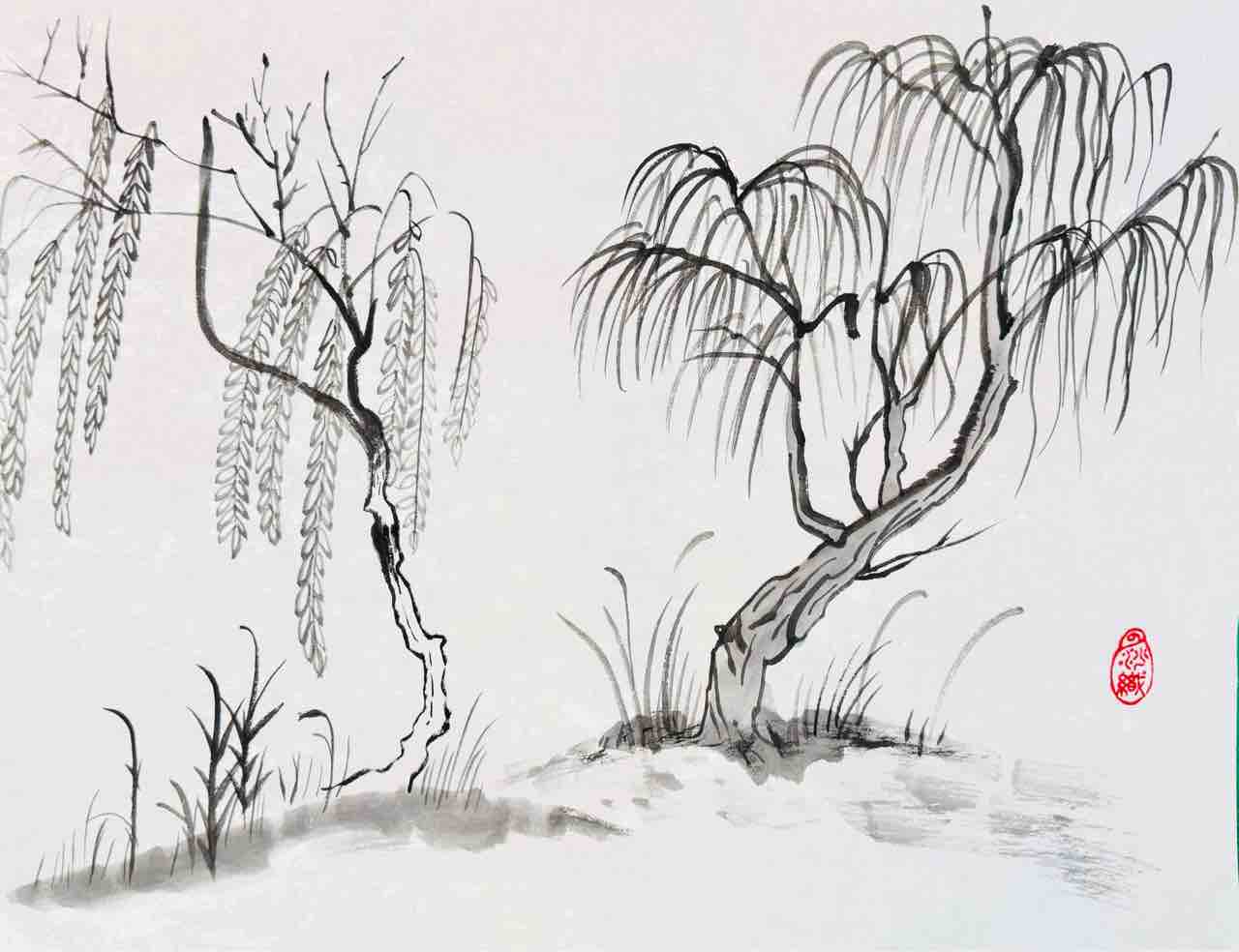 西日暮里日曜応用クラス生徒さん作品。樹木の模写をした後に、木で自分の作品を一枚に仕上げてもらいました。1枚目は、書道の先生をしている今年から高校の先生になったHさん。自分の好きな漢詩を即興で絵に添えて完成させました😊2枚目は、黒い幹と白い幹が印象的な物語性のあるNさん作品。3枚目は、構図の余白が美しいSさんの作品。皆さん素敵な作品に仕上がりました👏👏👏