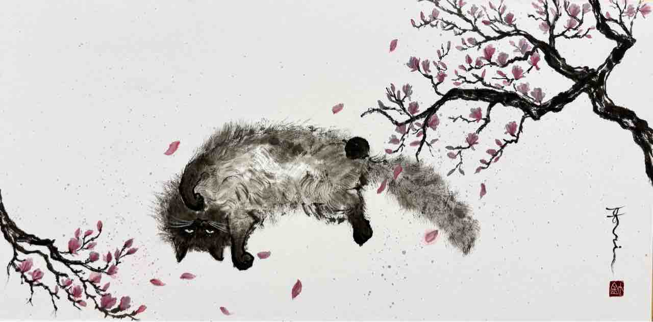 2025年07月30日 用賀応用クラスで学ばれている生徒さんの、国際墨画会展出品作品 「陽春」用賀応用クラスで学ばれているHさんの、国際墨画会展出品作品。お腹を見せてこちらを見ているフワフワの猫ちゃん、舞い散る花びらを見上げる構図がとてもオシャレです🥰The lovely piece painted by Hiromi who studies in the advanced class at the Setagaya studio, exhibited at the International Sumie Exhibition. 「世田谷用賀•上野毛教室」カテゴリの最新記事