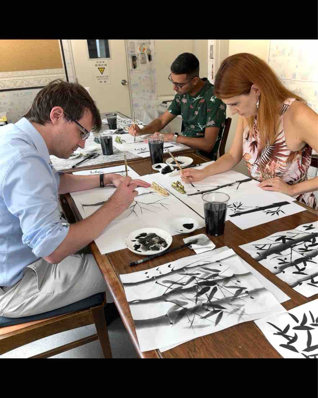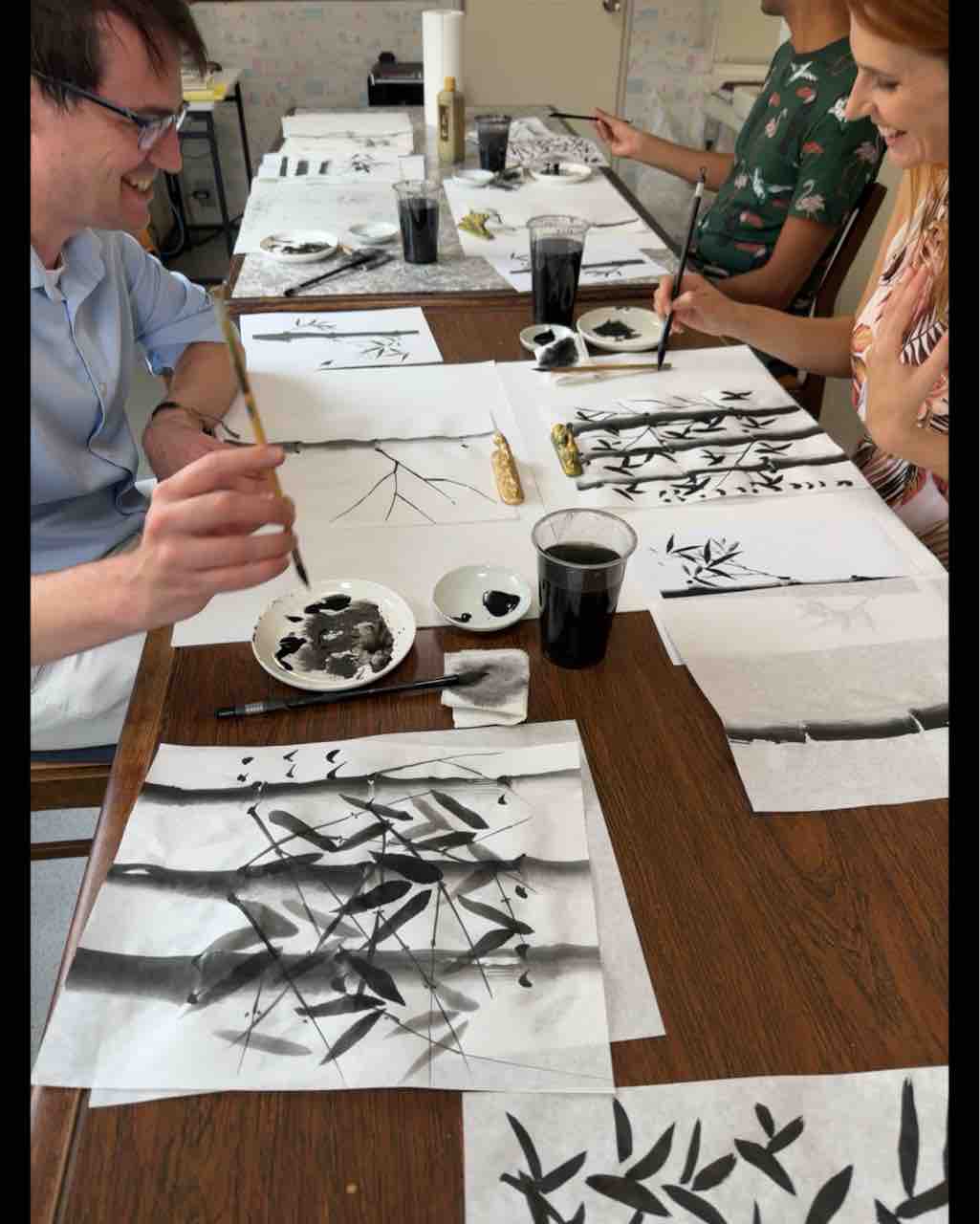 Although it was their first time trying sumi-e, they showed great interest and seemed to genuinely enjoy the experience☺️